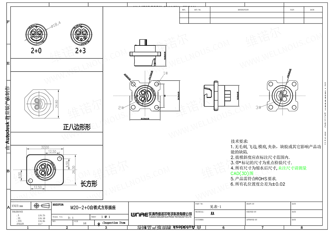 M20-2+0方形母座