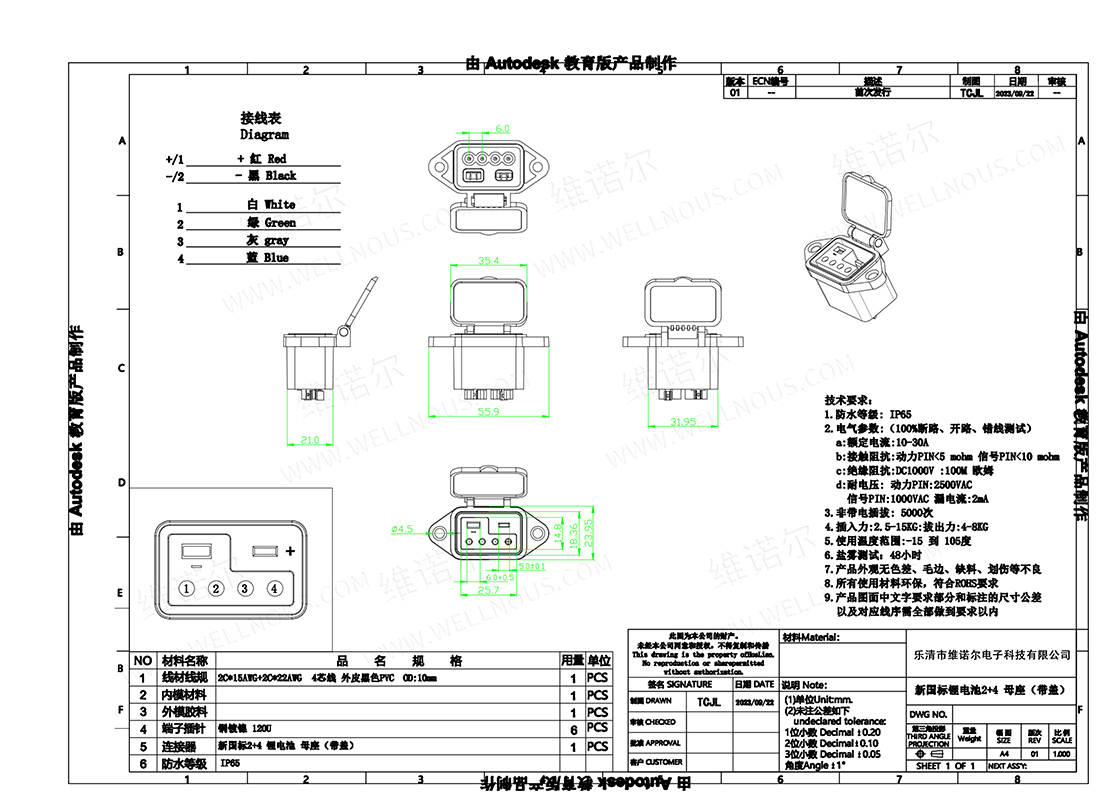 DC母座带线