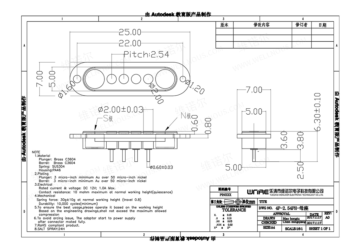 0.5 1.0 1.25针座连接器
