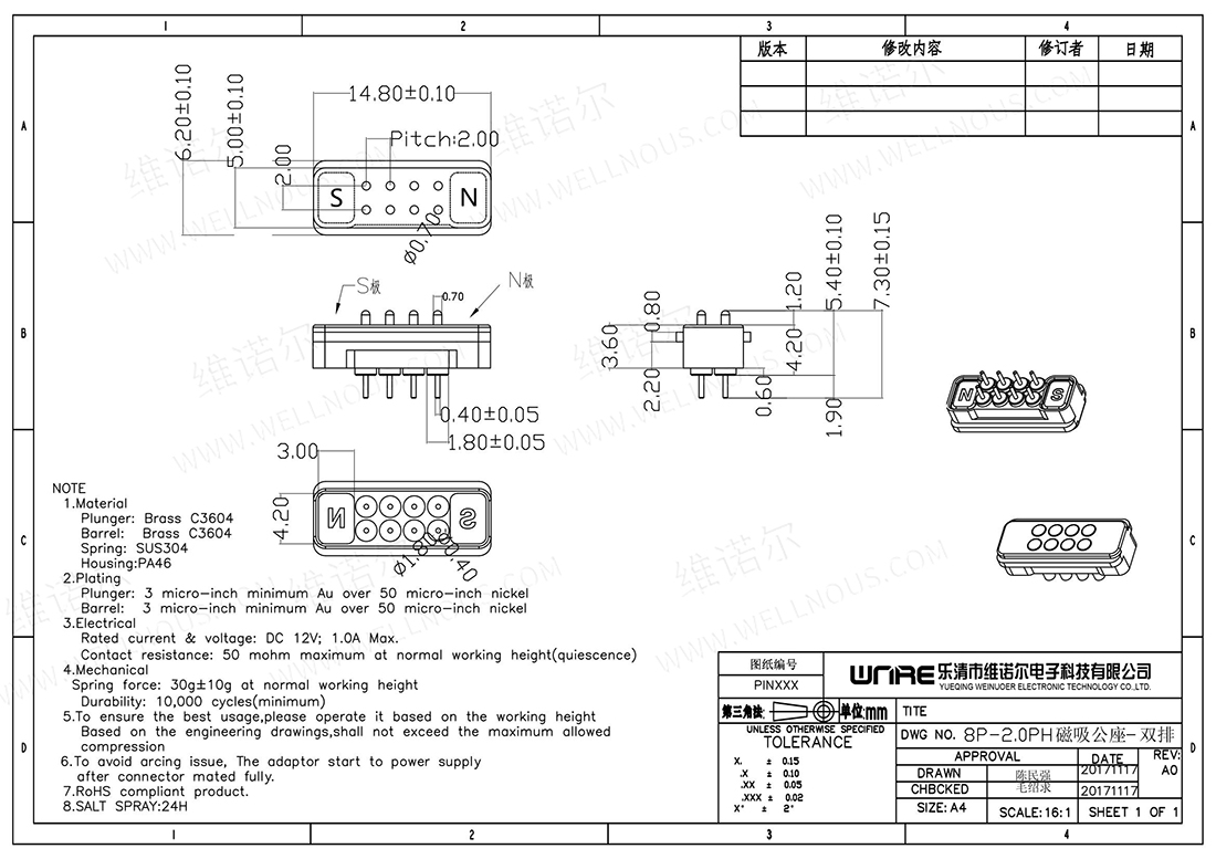 防水磁吸充电连接器