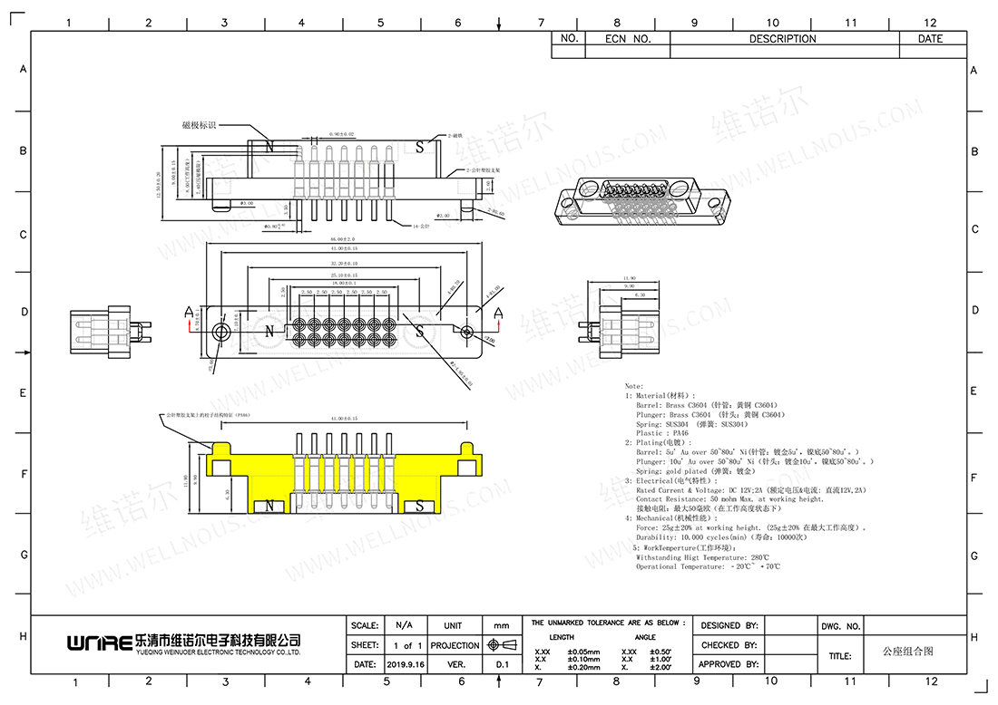 防水磁吸充电连接器