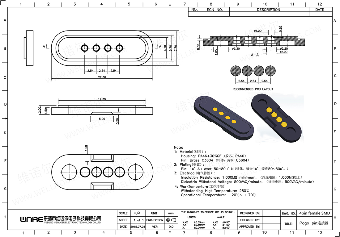A型4pin贴片母