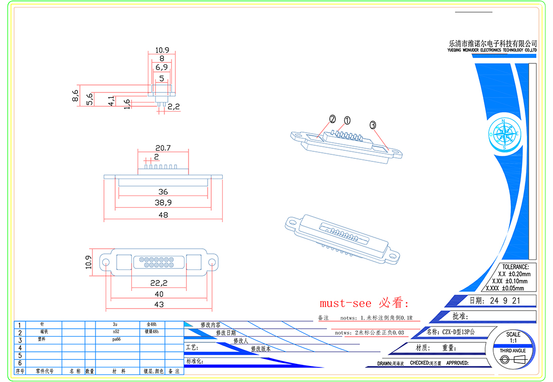 防水磁吸充电连接器