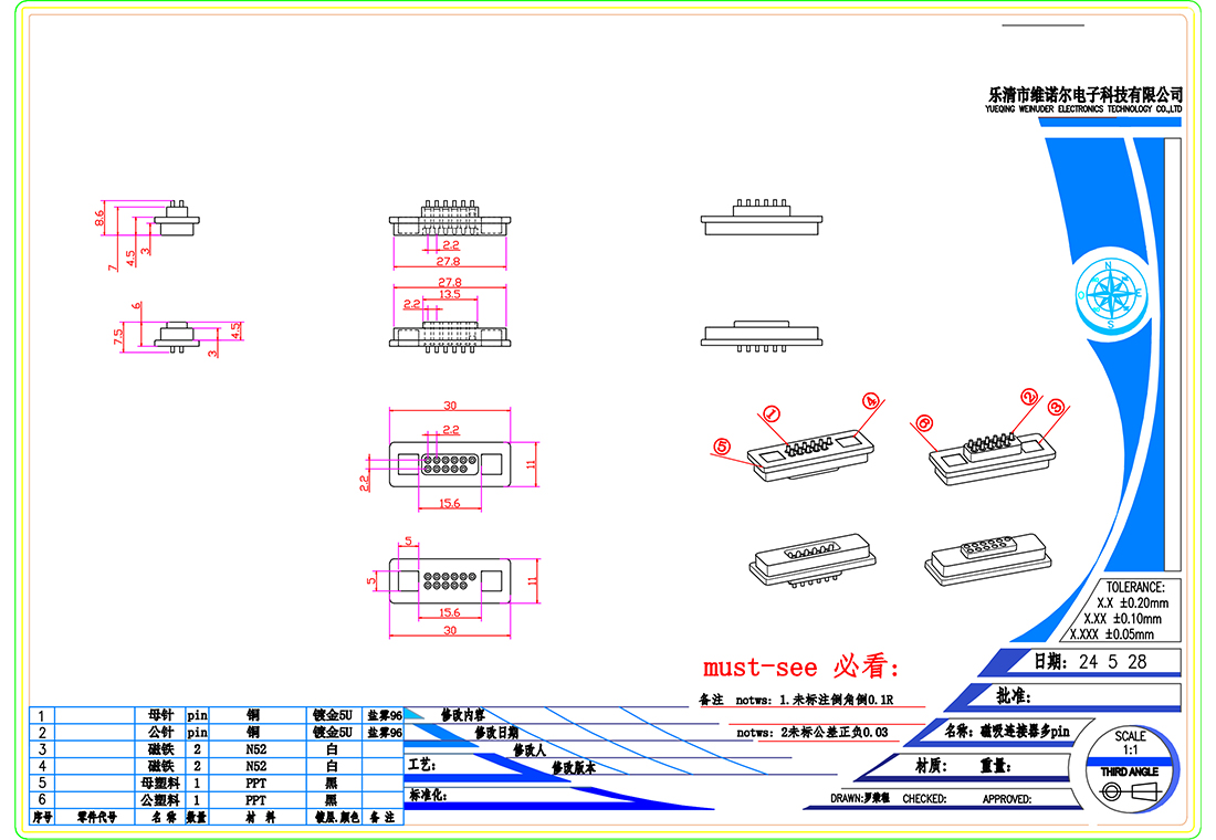 防水磁吸充电连接器