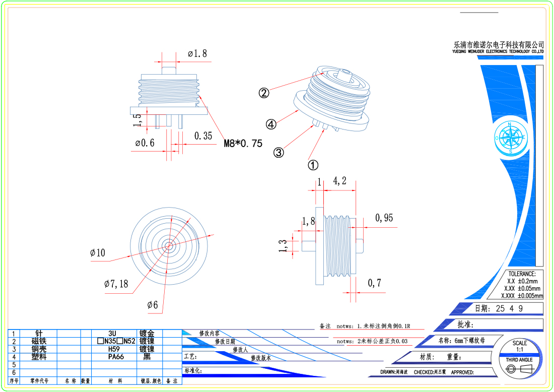 螺纹磁吸连接器