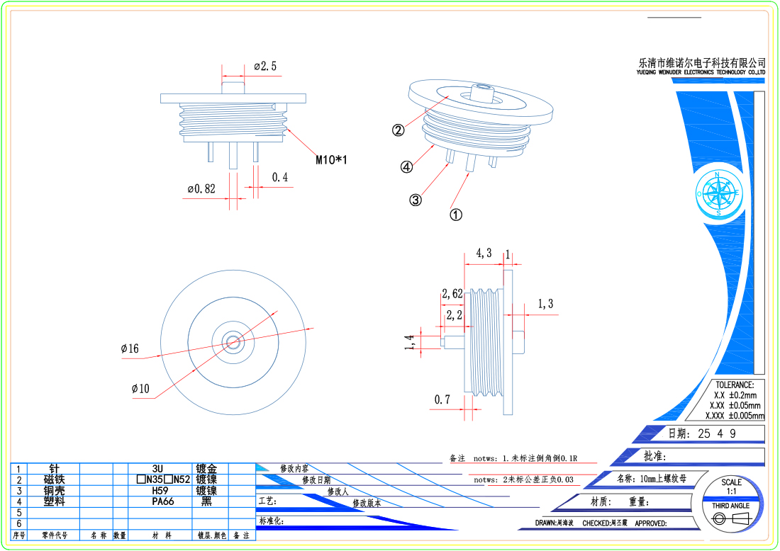 螺纹磁吸连接器