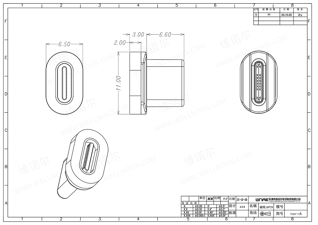 防水磁吸充电连接器
