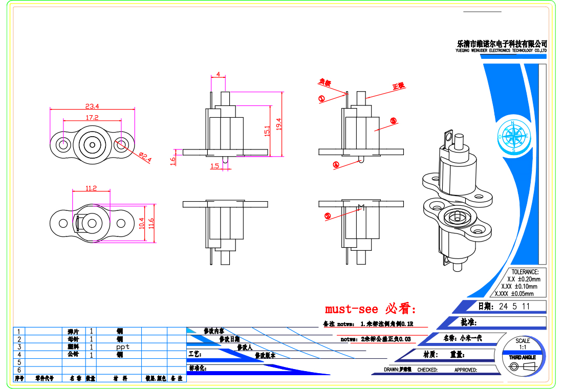 防水磁吸充电连接器