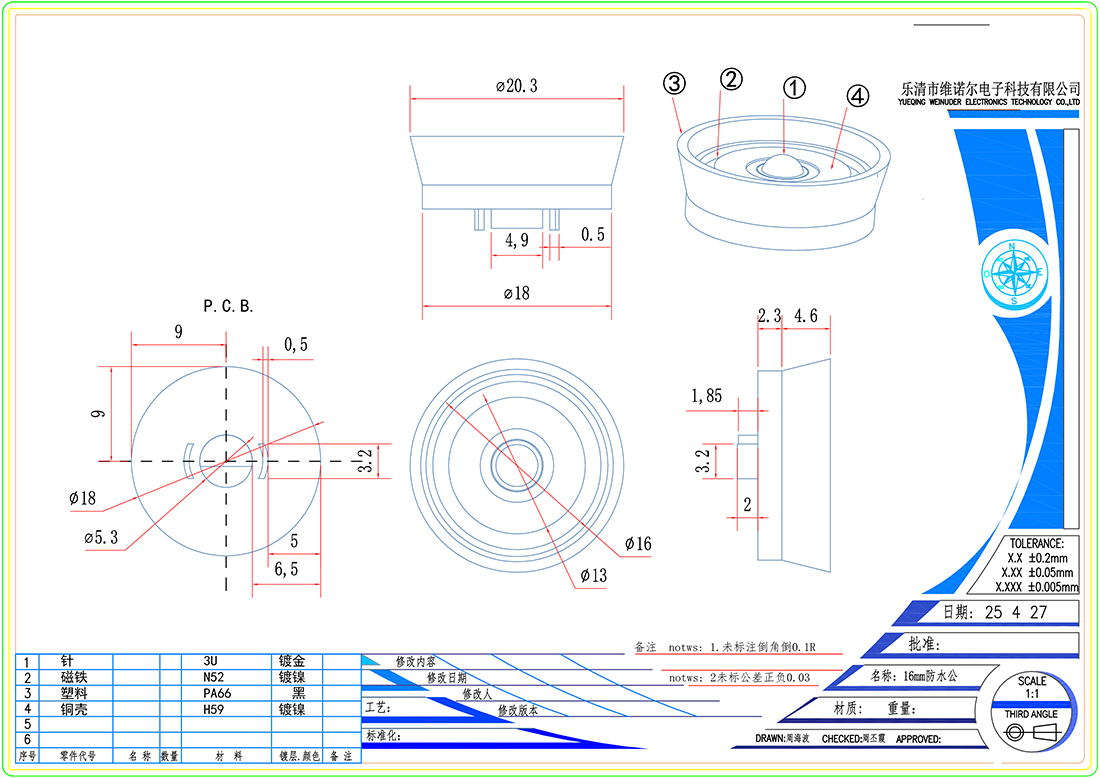 防水磁吸充电连接器