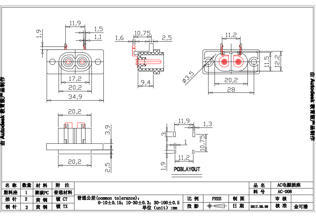 DC母座带线